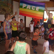 I bambini di casa Speranza sono tanti, belli, vivaci. Sorridenti, divertenti ma anche duri, tenaci. Bambini che nei loro occhi colorati, piccoli, grandi, alcuni strabici, portano tracce di rabbia, di delusione, di tristezze passate. Ma i loro occhi sanno guardare lontano, sanno intravedere e comprendere le situazioni. Sanno scrutarti e cogliere la tua debolezza. Nel loro italiano imperfetto ma molto più che comprensibile, esprimono opinioni precise e criticano con pertinenza. Dicono quello che vedono e pensano, e vivono alla giornata nella loro maniera: prendono quello che trovano perché non hanno nulla di loro, fanno quello che vogliono finché qualche adulto non dice loro cosa devono o non devono fare. Non concesso a nessuno disobbedire, essere violento, essere sporco, prendere senza chiedere. Eppure succede. Si fa fatica a stare insieme tutti i giorni tutto il giorno, si fa fatica a non avere nulla, un piccolo spazio, un oggetto che sia solo “mio”. Eppure casa Speranza è casa loro. E noi siamo arrivati in punta di piedi, ma con piedi grandi e ingombranti per cercare di entrare a far parte, anche per pochi giorni, della loro vita.